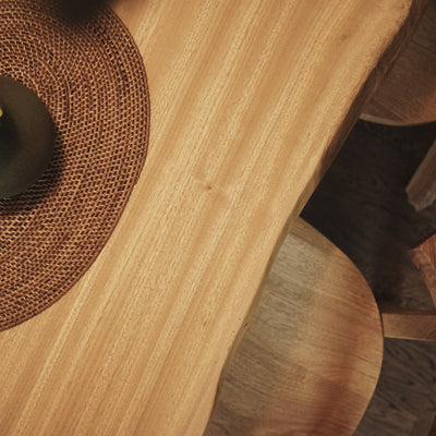 餐枱則特別揀選了來自日本的水曲柳木一枚板,自然的弧度塑造出日本自然的感覺,旁邊則配上非常受客人歡迎的Dan Chair,和諧自然。