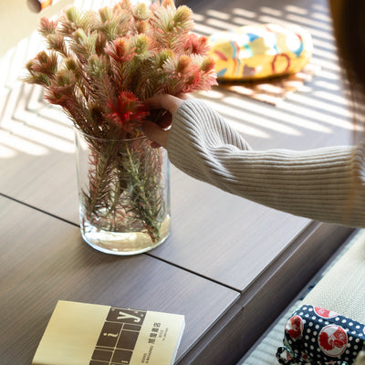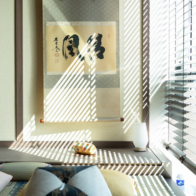 單位原為兩房格局,拆除客房以擴大客廳面積造成日式和室,增添獨特風格。戶主在日本蒐集了許多日式的裝飾品,為整個單位注入了更多的日式風情,完美結合了現代生活與傳統文化的精髓。主人房極採用了日式木條的設計,為整體空間增添了日本和式旅館的溫馨感。