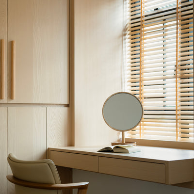 屋內結構橫樑多,設計師使用木工天花以隱藏橫樑,讓客廳感覺更整潔,同時提供大量儲物空間。玻璃間隔劃出半開放式廚房,不但增強空間通透感,更讓光線更流通。木色的外觀和厚重的木條子形狀,進一步突顯了日式風格的特點。